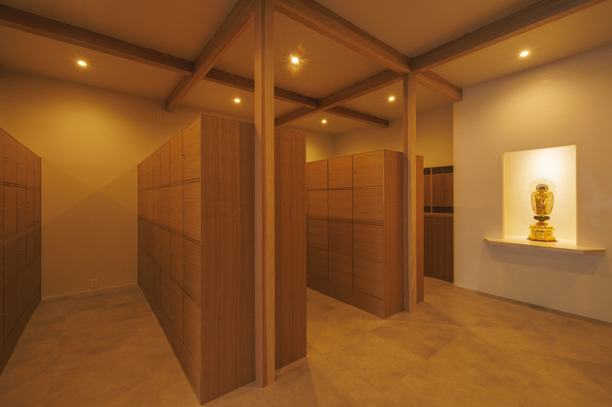 シンプルでありながら上質で、落ち着いた印象の納骨壇が整然と並ぶ、納骨スペース。